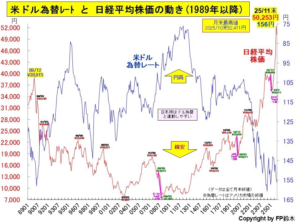 2025年11月の日経平均株価は月間で下落したものの50,000円台をキープしました。