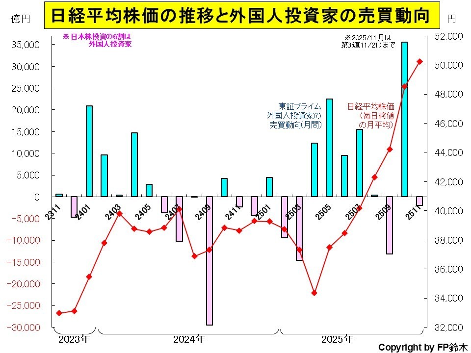 2025年は11月第3週まで6兆0900億円の買い越し。