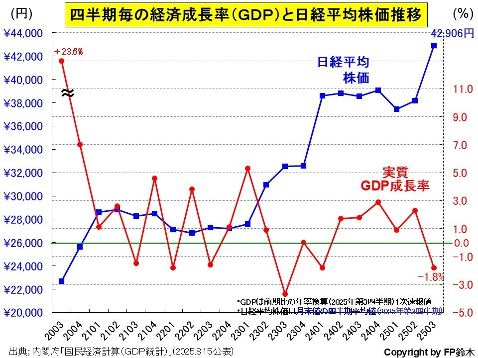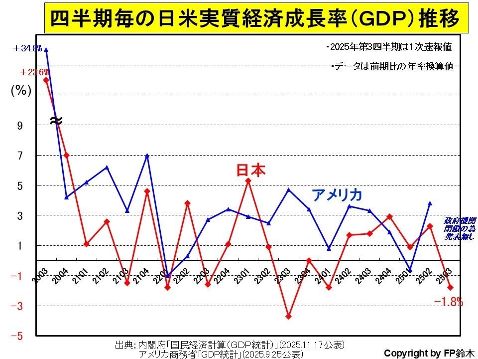2025年第3四半期は実質年率-1.8%ですが、名目では+0.5%。