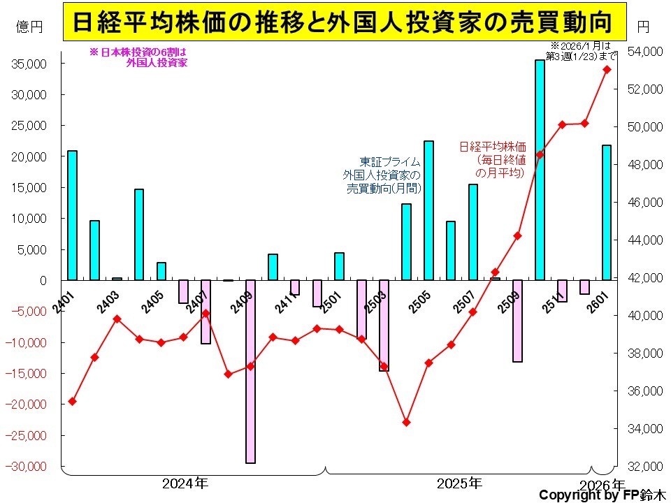 2026年は1月第3週までに2兆1700億円の買い越し。