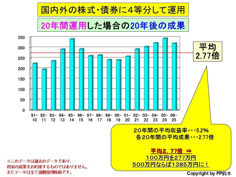 20年間であれば1.95倍~3.43倍の成果で、平均2.77倍となりました。