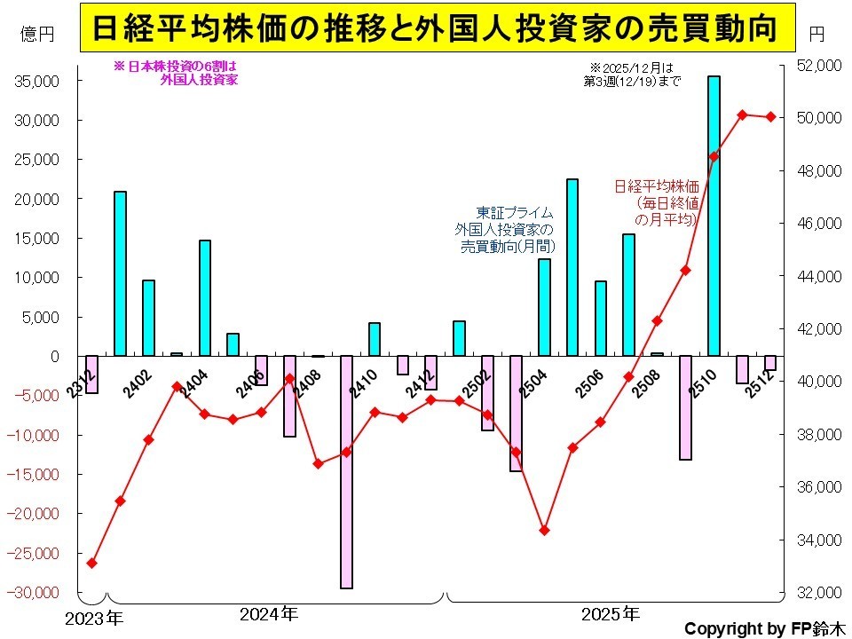 海外投資家の3年間連続の買い越しは、日経平均株価の3年間連続の上昇の原動力となっています。